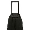 Rolling backpack with double skate wheels. Measures 13in in lenght x 10 in wide x 17" high. Features include 2 zippered pockets on the front of the bag with one having a built-in organizer. Zippered main compartment opens to large storage opening, and two mesh side pockets. Fabric handle at the top and telescoping pull handle. Bag made of durable polyester with metal telescoping handle and heavy-duty plastic stand on bottom to keep the bag standing.