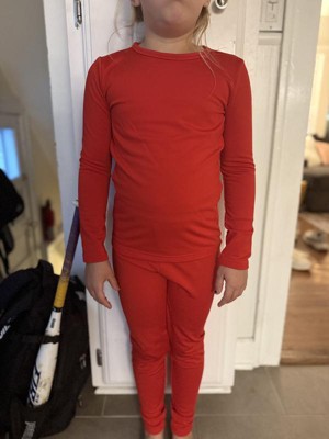 My daughter loves this thermal underwear set! She really struggles with textures and this time of year cries when she has to wear regular pants. These don't look like traditional thermal underwear, so she can wear them under dresses to keep her cozy. The description says red, but I think it leans more pink. There are no tags, which is phenomenal for us!