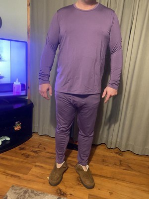 Soft and comfortable thermal set for layering. The color is a deep plum that goes well with most ski jackets. The fit is true to size. It is 92% polyester and 8 % spandex which has a silky smooth feel. Underneath has a soft flannel texture. The material has enough stretch to fit perfectly. My son is 6”2 and he weighs 168 lbs. The medium fits well. Machine wash cold and tumble dry on low setting. Washes well. I do recommend this for cold weather layering.