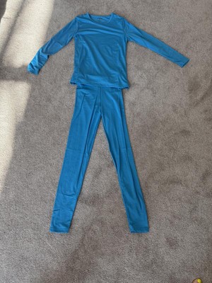 I love this lightweight thermal underwear set! The outside material has a smooth/silky feeling to it and the Inside fleece material feels so soft. I love how lightweight it is because I can wear something on top of it and not feel bulky. I am 5’2” and the set I have is an XS. The pants are a little long, but it’s not drawback for me.