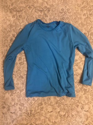 The rocky women’s fleece lined base layer long sleeve is very soft on the inside due to the tshirt being fleece lined. It is also very silky smooth on the outside because it is made mostly of polyester. Please note that this is made of 90% polyester and 10% spandex. The 10% spandex makes this tshirt incredibly stretchy! Also, note that this clothing item is meant to be washed cold and dried on low. My base layer long sleeve is a very bright blue (shade teal). By itself I think the long sleeve gives a touch of warmth but I can still feel the cold coming though the material. So, yes, this is definitely a layering piece. However, when layered underneath a polyester jacket or an acrylic knit I found I was oddly not warm at all. This worked best for me when layered underneath a cotton crewneck. I have this in a size medium (8-10) and I do think it is true to size.