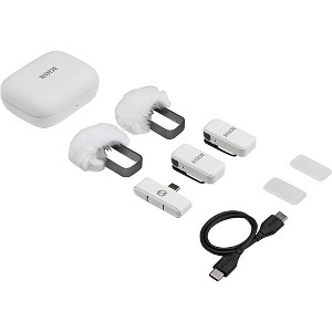 The Wireless Micro is a compact, plug-and-play solution for capturing high-quality audio directly on smartphone. Available with a USB-C connection, this ultra-lightweight microphone system features two clip-on transmitters with in-built microphones, allowing for instant recording setup without cables. Equipped with RØDE's Intelligent GainAssist technology, it automatically adjusts audio levels for clear, consistent sound in any environment. The receiver connects seamlessly to smartphone, with up to 18 hours of battery life provided by the included charging case, making it ideal for on-the-go content creation. Integrated windshields and optional furry windshields ensure excellent audio capture outdoors, while the free RØDE Capture app supports smooth video recording. Available in sleek black or white, the Wireless Micro is designed for maximum ease and performance in a pocket-sized package.