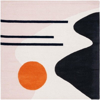 Transform your living space with this stunning 6'0" x 6'0" area rug. Its striking rust and black geometric pattern adds a contemporary flair that complements any room. Crafted in India, this hand-tufted piece combines wool cotton with latex, providing both comfort and durability. With a square shape and a height of 3/8", it fits seamlessly into your interior. The unique fusion of modern design and traditional craftsmanship ensures this rug becomes a centerpiece in your home. Bring elegance and style to your space with this captivating addition.
