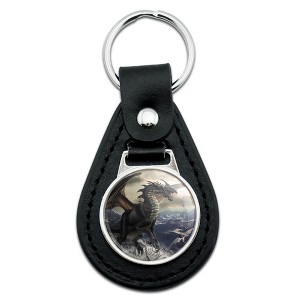 Rogue Dragon Winter Mountain Top Black Leather Keychain