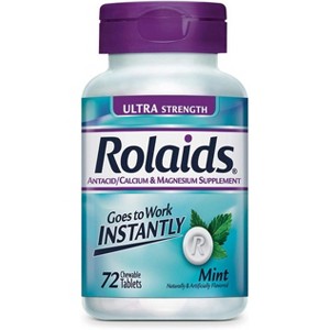 Relieve heartburn, acid indigestion, and sour stomach fast with Rolaids Ultra Strength Antacid Chewable Tablets. Each mint-flavored chewable delivers maximum strength calcium carbonate and magnesium hydroxide to neutralize stomach acid quickly. Rolaids provides immediate relief from discomfort caused by overeating, spicy foods, or stress-related acid reflux. The convenient 72-count bottle ensures you’re always prepared for sudden symptoms, making it a practical choice for home, work, or travel. Enjoy the refreshing mint taste while getting fast-acting, reliable antacid support that’s trusted for generations.