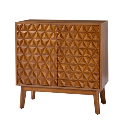 Grooved Panel Accents: Decorative grooves on the cabinet doors add depth and visual interest, showcasing fine detailing and enhancing its traditional appeal.
