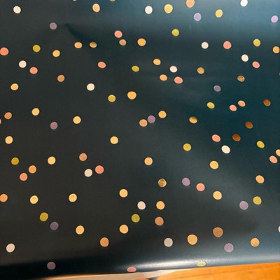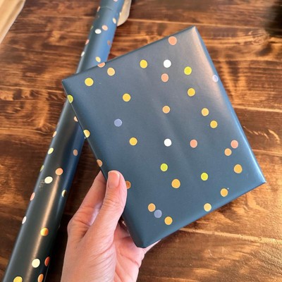 I always like to keep wrapping paper options on hand, so I ordered this to add to the collection. I really like the dark color with the fun pops of color in the dots. It’s perfect for pretty much any occasion and any gender recipient. I like that the paper has the grid lines on the underside. My issue is when I first opened up the roll of paper the edge was glued down and I ended up tearing a good 6 inches of the paper which felt wasteful.