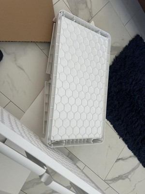 A: The shelf is made from plastic, specifically 100% post-consumer recycled plastic.