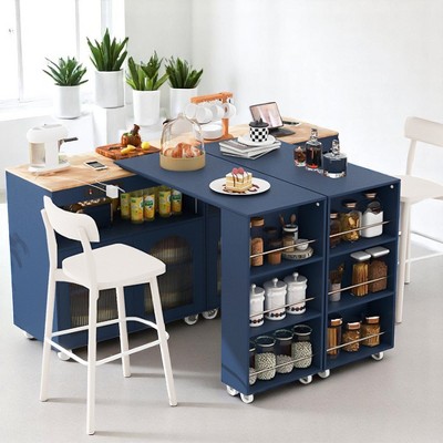 - Customizable Movable Dining Table: The kitchen island and extended table are not fixed, allowing you to freely adjust distance and angle to fit your space, create flexible layouts, and enhance kitchen functionality.