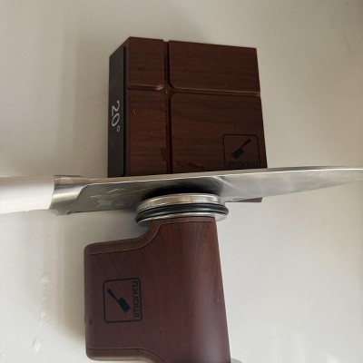 When cooking at home, the knife will become dull after a period of time. When cutting vegetables and meat, it is not only laborious, but also easy to cut it untidy. I have also tried to use the traditional sharpening stone before, but I always can't grasp the angle well, which is not only troublesome, but also worried about grinding the blade. Later, I bought this imarku rolling knife sharpener set, and I felt that it was really practical after using it. First,it has two diamond grinding discs, which feel very smooth when sharpening the knife, and the blade can quickly restore sharpness without too much force. Compared with the pull-and-pull knife sharpener, the rolling design is more stable, the knife body will not slip, and there is no need to worry about the angle disorder. What I like best is its matching magnetic angle guide, which can choose four angles of 12°/13°/15°/20°. This design is too friendly to me. In the past, I used to sharpen the knife completely by feeling, and I often sharpened it bluntly. Now, as long as you choose the right angle to get stuck, you can grind it, and basically there will be no mistakes. Like a chef's knife, I usually use 15°, which is very smooth to cut vegetables; if it is a small knife, you can use a smaller angle, sharp but not fragile. For daily use, I think it is especially suitable for families. It is simple to operate and does not require any experience. Even those who rarely sharpen knives can get started quickly. Moreover, it is packaged in a gift box, which looks exquisite and generous as a whole, and it is also suitable for gifts, especially for friends or parents who like to cook. It is very practical. In general, this knife sharpener is a very valuable gadget in my kitchen. It not only helped me solve the problem of blunt knife, but also saved a lot of effort and time. It's easier to cook and cut vegetables at ordinary times, and I'm in a better mood. If you are also worried that the knife at home is not sharp, this sharpener is really worth recommending.