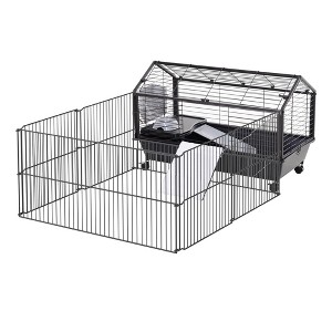 - Small Animal Cage Information: Overall Dimensions: 34.75" L x 50.5" W x 22" H. A Happy Home for Bunnies, Hedgehogs, Guinea Pigs, and More. Note: Not Suitable for Hamsters and Rats.