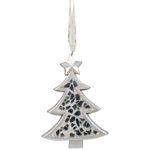 Roman Mosaic Style Tree Christmas Ornament - 4" - Silver
