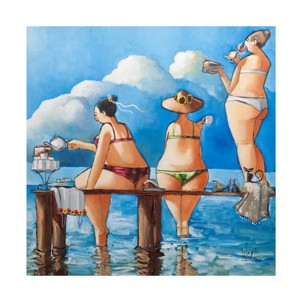 - ART WALL CANVAS - This Ronald West 'Tea Break On The Jetty' canvas art by Image Conscious is sure to complement any room décor with its Modern & Contemporary style featuring a painting of a character scene on a cloudy background..