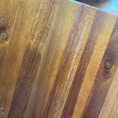 I love that this is real wood and not fake board wood. The real wood also does not show dust as easily. They are a great size too. Perfect to hold a laptop, drink, & whatever else you need by the couch or bed. Some of the wood is "worn" in places so that is why it is not 5/5 stars. Definitely a good price though!