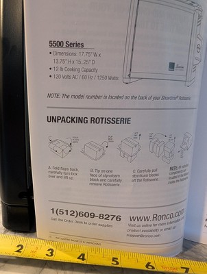 - LARGE CAPACITY ROTISSERIE OVEN – Featuring a 15-pound capacity, Ronco’s Modern Rotisserie Oven easily fits a whole turkey or 2 whole chickens at once. Despite the large capacity, Ronco’s countertop rotisserie is compact and stores away under your cabinets. Dimensions: H: 14.5”, W: 19.5”, D: 13.5”