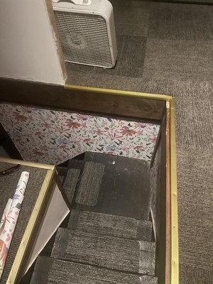 I had originally bought this for a bathroom but changed my mind and had it sitting in a corner. I finally decided it would be perfect for the stairwell. Super easy to work with and everything lined up easily even with the angles of the stairs!