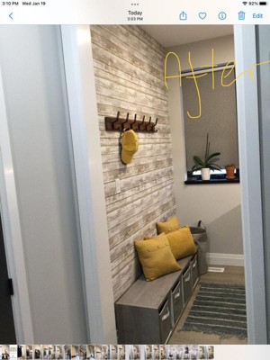 I bought this 2 days ago and put on my laundry wall the next day. Very easy to install. Looks like real wood panels. Gorgeous wallpaper and my laundry wall looks awesome