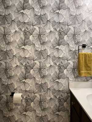 RoomMates Ginkgo Leaves Black Peel and Stick Wallpaper: Removable Vinyl, Self-Adhesive, Modern Floral Botanical Design