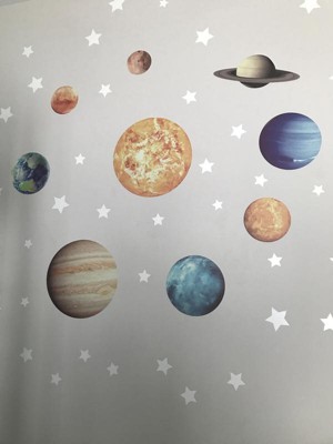 When I bought the stars I also purchased the Solar system stickers that go in the dark so I made a whole wall with all the planets and put the stars it looks beautiful in the dark. My grandson just loves The display of all the planets and stars and he’ll name everyone of them.