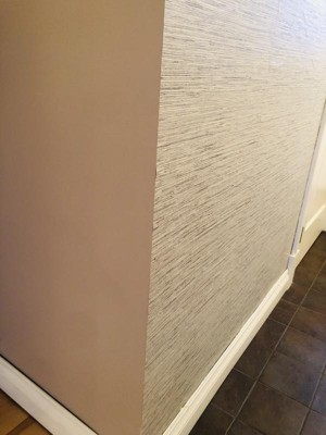 THRILLED w this particular RoomMate product!!! Stuck sooo well to a slightly textured wall in Master Bath & I tested it for months of steamy showers…doesn’t budge or shift!!! My textured wall shows thru just a bit but the grasscloth textured look compliments it! Easy & so forgiving to work with if any patch repairs. BEWARE that ssme dye lot # is a plus!!! The tolls can vary even fm side to side but if u get same dyelots, roll thrm out side by side to see any minor OR major differences. U can see the seams on some of my walls but even real grasscloth does that (and real stuff is soooo expensive & not WASHABLE!). I wd ask the company to put grid marks on backing paper to make cutting & hanging plumb easier! With arrows to distinguish tops vs bottom of rolls. Easy to get confused with small pieces. Even tho I hung w all repeats matched up…u can cheat slightly w this style!!! Make sure rolls are sticky & not yellowed!!! Old rolls of peel & stick start bto lose their adhesion. Very easy to pull off over & over without compromising wall or paper stickyness!!! 5 stars!!!! If u use a lighter color, best to skim coat out the lumps bumps of a textured wall. But So far 3 months of love & saved $ doing myself!!!