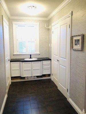 I installed Faux Grasscloth in black in my bathroom and it looks wonderful - very much like the real thing without the maintenance/upkeep/room considerations of actual grasscloth. It was easy to apply but I did have a few issues with corners peeling down - that definitely could have been my fault though as I'm not sure I prepped the wall adequately enough. Overall, this is a great product!