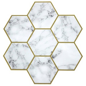 RoomMates Large Hexagon Cararra Marble Sticktile Gold: Self-Adhesive Vinyl Wallpaper, Classic Metallic Pattern, 3.06 Sq Ft Coverage