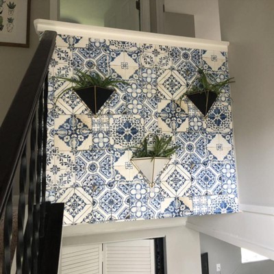 RoomMates Mediterranian Tile Peel & Stick Wallpaper Blue: Vinyl Self-Adhesive Wall Tiles, Repositionable, RMK11083WP