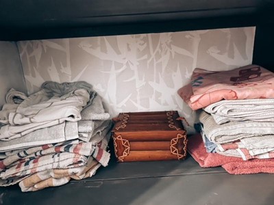 I've been wanting to liven up my linen closet for a long time. This Bamboo P&S Wallpaper adds dimension and depth to what is otherwise normally a basic white wall. The wallpaper is very subtle, perfect for those who aren't ready to commit to a more dramatic design. I personally think it's the perfect peekaboo design. Back of closets, laundry room, inside cabinets. It really brightens up those dark spots.