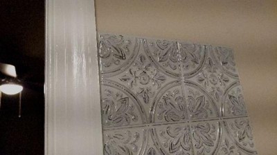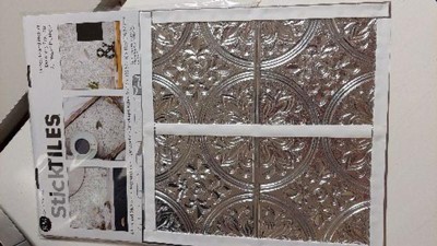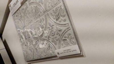 The classic beauty of Victorian tin tiles is interpreted into easy and affordable current design with these White Tin Peel and Stick StickTiles from RoomMates. Originally designed to imitate the exquisite ceiling plasterwork of grand European homes, faux pressed tin designs are now fashionably used for art-work, back splashes, cabinet faces, wainscoting and more. The 3D/embossed design elements within the tile capture timeless motifs like the fleur de lis, acanthus scrolls, medallions and architectural gridwork. Soft white mt finish with a rubbed effect that hints silver metal beneath makes these StickTiles the perfect accompaniment to any home décor. RoomMates StickTiles are easy to clean and are the go-to solution for do-it-yourself easy and affordable décor installed with regular household tools, helping you decorate in minutes. 4 Tiles 10.5 inch x 10.5 inch. Covers 3.07 sq. ft.; Peel and Stick - Real metallic look without the hassle of tile installation; Transform Your Space - Tin StickTiles are the perfect way to redecorate your room with a vintage twist!; Easy to Apply - Each StickTile has adhesive foam strips on the backing and can be easily cut with a utility knife. Just peel and stick!; Textured Surface - With a textured and worn metallic surface, these tiles are designed to bring life and character to any room.; Material - Our tiles are made of flexible PVC, which is both washable and water resistant.; ; ; .