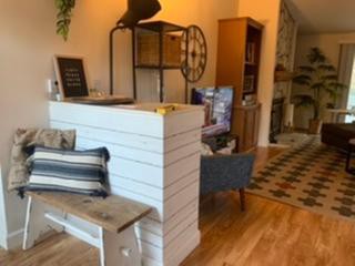 I love the look of this shiplap self adhesive wallpaper and wanted to make some cute seasonal farmhouse styled accents for my front door. The Roommates self adhesive wallpaper is always my go-to for DIY projects like this because it’s so fun and easy to use! I bought some inexpensive plywood rounds from the craft store and covered them with the shiplap wallpaper to make my bases. I added the messages to the wide ribbon with heat transfer iron-on and added some silk florals to create these pretty pieces to dress up my front door for the upcoming Thanksgiving and Christmas holidays! These were so fast and fun to make, I might even make a few more as gifts.
