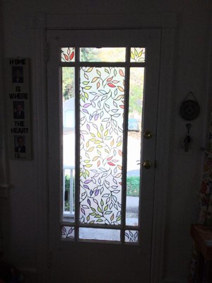Increase home privacy while maintaining style with Stained Glass Leaves Privacy Window Film by RoomMates. A decorative way to shield a selected area from visibility, filter light from an area, and protect surfaces from fading, privacy window films stick to any glass surface with ease. Plus, this static cling window film requires zero adhesive to hang! The installation process takes minutes. Simply cut the film to fit the desired space and stick it to the glass surface. Remove and reposition as much as needed with zero damage to the film or the surface. Windowfilm roll size - 24 inches x 74 inches; NO ADHESIVE: Unlike other window films, RoomMates StickSHADES have zero adhesive and are created with static cling technology allowing the film to cling to glass with ease.; EASY TO INSTALL: Peel off and remove the backing; then stick to any clean window or glass surface.; REPOSITIONABLE: Move window film easily to get the position just right.; REDUCE GLARE & FADING: Lessen glare from the sun, window films aid in blocking UV rays while protecting surfaces from fading.; NO SPECIAL TOOLS: Easily trim privacy films with sharp blade to customize.; EASY TO REMOVE: Peel off in seconds if removal is needed; no sticky residue is left behind.; ; CLEAN WITH EASE: Simply wipe with water to clean..