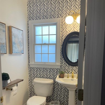 Love the pattern of the wallpaper. Application was a little tricky when placing the first piece- I recommend working 10 -12 inches at a time, pressing down the middle and then smoothing out to the sides. After that I started to get the hang of it on the next panels.