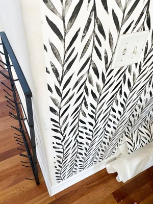 RoomMates Willow Magnolia Home Wallpaper Black: Self-Adhesive, Peelable, Repositionable, Botanical Leaf Pattern
