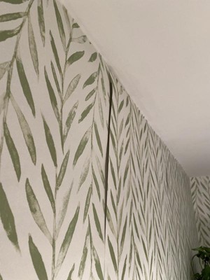 RoomMates Willow Magnolia Home Wallpaper Green: Self-Adhesive, Peelable, Repositionable, Botanical Leaf Pattern, 34 Sq Ft Coverage