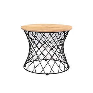 Roost Coffee Table: Rustic Round Mango Wood with Iron Frame, Distressed Finish, 20"x20"x18", Living Room Furniture