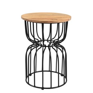 Roost End Table In Mango Wood Brown - Timbergirl: Round Metal Frame, 16" Height, 14" Width, 1" Thick Tabletop