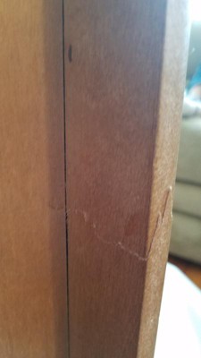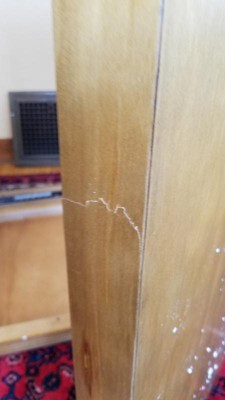 Received damaged but not going to disassemble at this point. It definitely affects the value of the piece. I am going hope that the piece doesn't crack more if we ever move it. Very frustrating. Also, even though this is described as wood, and it looks pretty assembled, the doors and draws feel cheaply made. They close with some difficulty and the sound they make is not of good wood. I wish I had shopped antique shops because I could have bought something of quality for the price and I would have seen any flaws or cracks in person. Lesson learned?