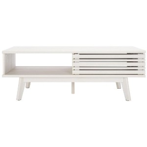Retro-chic style meets artistic negative space in this Rori Coffee Table. Abounding with depth and dimension, Rori provides your living room with ample storage with sliding doors in its discreet shelf, and a rich bleached white finish ensures Rori perfectly accents any decor's color scheme.
