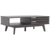 Retro-chic style meets artistic negative space in this Rori Coffee Table. Abounding with depth and dimension, Rori provides your living room with ample storage with sliding doors in its discreet shelf, and distressed black finish ensures Rori perfectly accents any decor's color scheme.