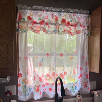 [This review was collected as part of a promotion.] This curtain and valance is such a bright piece of sunshine in my kitchen. Perfect for letting the sunlight in. The colors are like those of watercolors to me and give me a sense of cheer in my kitchen. Just lovely. ….and the material is actually nice to the touch and seems to be sewn well.