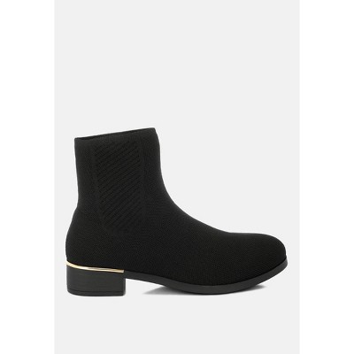 These sock boots are sure to take your style game to the next level. They feature a knitted upper and comfortable cushioned insoles that cut strain and provide a seamless fit. The low block stacked heel with a metallic accent detail elevates the look. Team these boots with your varied outfits to make a statement. Type: Boots Upper Material: Knitted Textile Outer Sole: TP Rubber Closed Round Toe Low Block Stacked Heel Paneling Detail Metallic Heel Rim Accent Comfortable Cushion Insole Heel Height: 1 inch SH5700