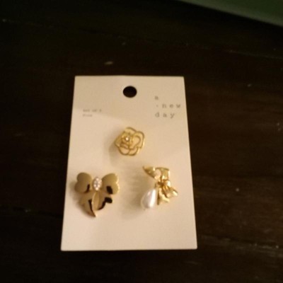 [This review was collected as part of a promotion.] Got these 3 piece cute pin set from A new day.These pin set have 3 different design pins.The set includes a rose,a bow with faux pearl dangler and a butterfly with a faux pearl in the center in golden finish color.These are made with nickle free metal and are of good quality.These can be used for securing any fabric due to its postback closures.These can also used to add style,design and touch of elegance to any outfit.I used to secure my scarf and folds of my outfit. I received an incentive to write this review.