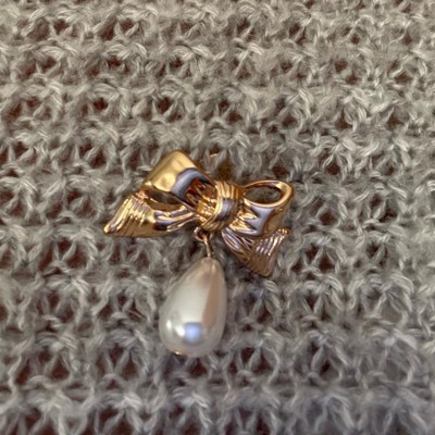 Add a bit of glamour to your everyday looks with this 3-Piece Rose Bow and Pearl Brooch Pin Set from A New Day™. The pin set includes a rose, a bow with faux-pearl dangler and a butterfly with a faux pearl in the center in a golden finish to add a touch of elegance to any outfit. The lightweight brooch pin comes with postback closures for secure and easy wear and is made from nickel-free metal to suit most skin types.