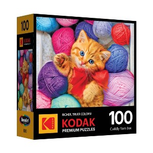 Kodak Premium 100 piece jigsaw puzzles represent the highest quality imagery and puzzles available today. Cuddly Yarn Box features a ginger cat playing in the yarn box with loads of colorful balls of yarn. These are the brightest, richest, most colorful puzzles we have ever made. Mounted on European premium puzzle board, you will feel the weight and quality in every piece. Each piece is fully interlocking and has a beautiful "snap" as you assemble the puzzle. Finished puzzle measures 10" x 13".