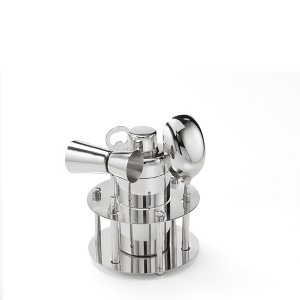 The mixologist in your life will love having all the tools he needs for the perfect Cosmo to hand, neatly to hand in mirror polish stainless steel bar tool set. Set consists of: stand, shaker, jigger, ice scoop, bottle opener. Cheers! Designed by and made exclusively for Roselli Trading Company®. Purchasing a Roselli brand product brings the genuine experience of staying at a five-star luxury hotel into your home.