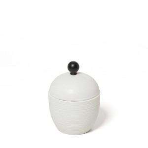 - Matte bisque ceramic collection with black metal accents