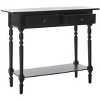 Traditional good taste is beautifully transformed for todays classic-contemporary interiors in this romantic Rosemary Console. A distressed black finish perfectly highlights Rosemarys turned spindle legs, while two drawers and a lower shelf provide ample storage and display in any room.
