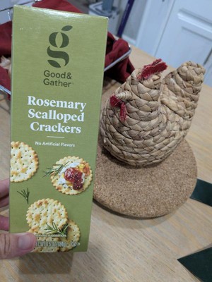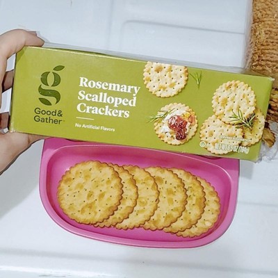 Combining robust flavor with an elegant touch, these Rosemary Scalloped Crackers from Good & Gather™ are the perfect choice for your next party or charcuterie board. These crackers have a delicious rosemary and scalloped-edge detailing, and they're great for dipping, pairing with cheeses, or snacking right out of the box.