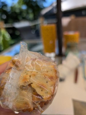 These crackers have a nice texture and crunch, and the scalloped edges make them look great on a cheese board. However, the rosemary flavor is very subtle and much milder than expected. If you’re looking for a bold rosemary taste, these might fall short, but they still pair well with cheeses, dips, and spreads.