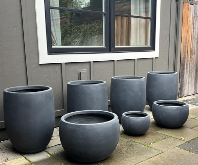 Rosemead Home & Garden, Inc. 20" Set of 3 Kante Lightweight Outdoor Concrete Planter Charcoal Black